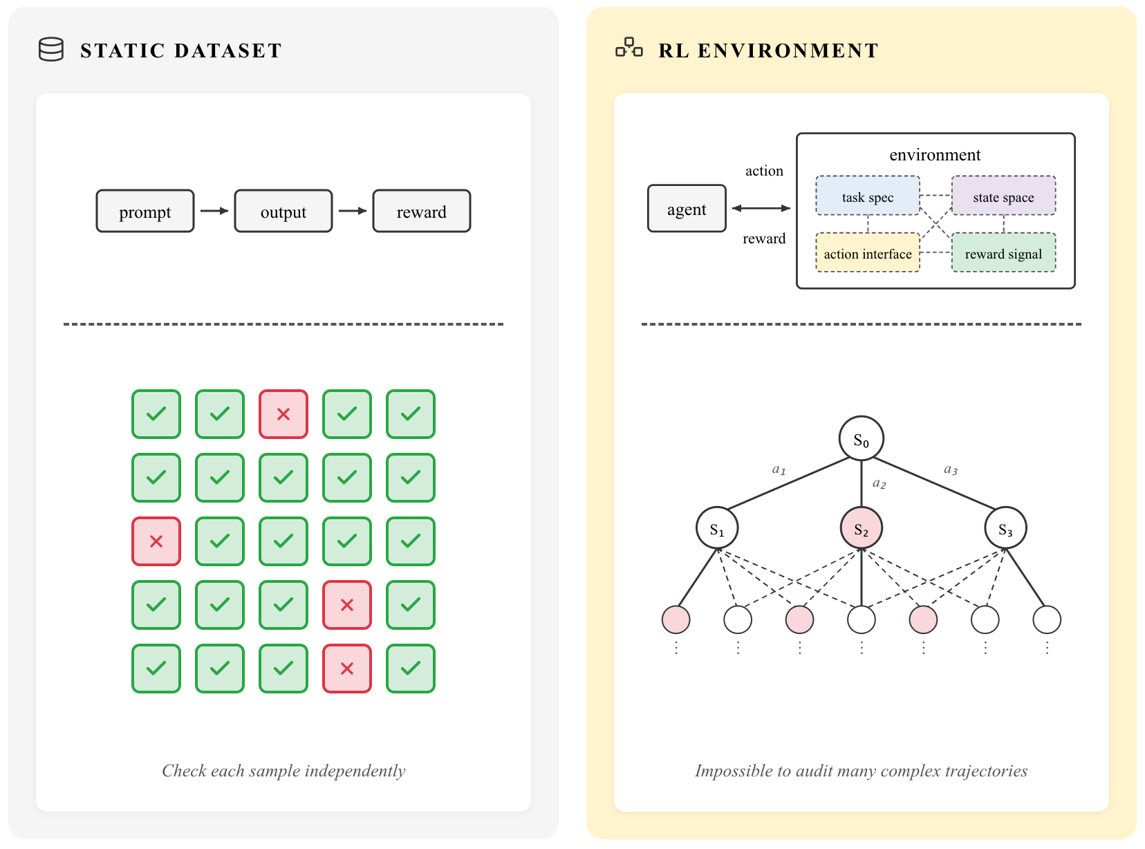 This is all before considering the impending future of multimodal RL, where agents train across fielding voice calls, analyzing visual charts, writing text, and executing code, all in the same trajectory. The idea of manual quality control becomes completely untenable.
